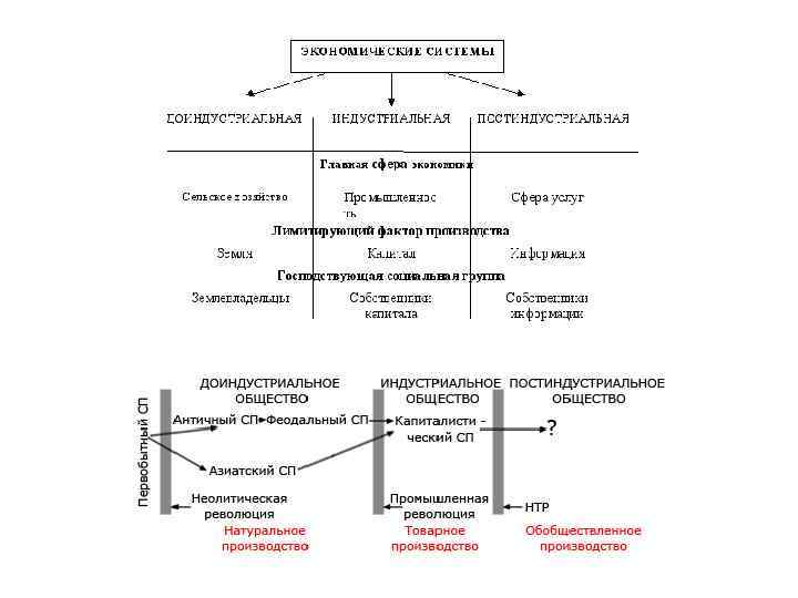 Исторический подход Доиндустриальное общество - господство натурального сельскохозяйственного производство. Человек был включен в биологические циклы природы, был вынужден подстраиваться под них, соизмерять свои действия с биологическим ритмом сельскохозяйственного производства. Индустриальное общество. Промышленная революция раскрепощает индивида: на смену личной зависимости приходит личная независимость. Она проявляется в том, что присвоение средств производства и жизненных средств не опосредовано в рыночной экономике принадлежностью человека к какому-нибудь коллективу. Каждый товаропроизводитель, хозяйствует на свой страх и риск и сам определяет, что, как и сколько производить, кому, когда и при каких условиях реализовать свою продукцию. Постиндустриальное общество. В ходе научно-технической революции наука превращается в непосредственную производительную силу, всеобщие производительные силы становятся ведущим элементом системы производительных сил. Если в аграрной экономике ведущим элементом была земля, а в индустриальной — капитал, то в современной —лимитирующим фактором становится информация, накопленные знания.