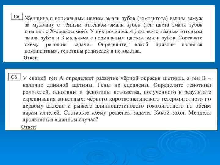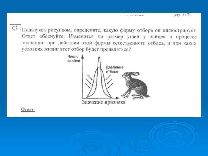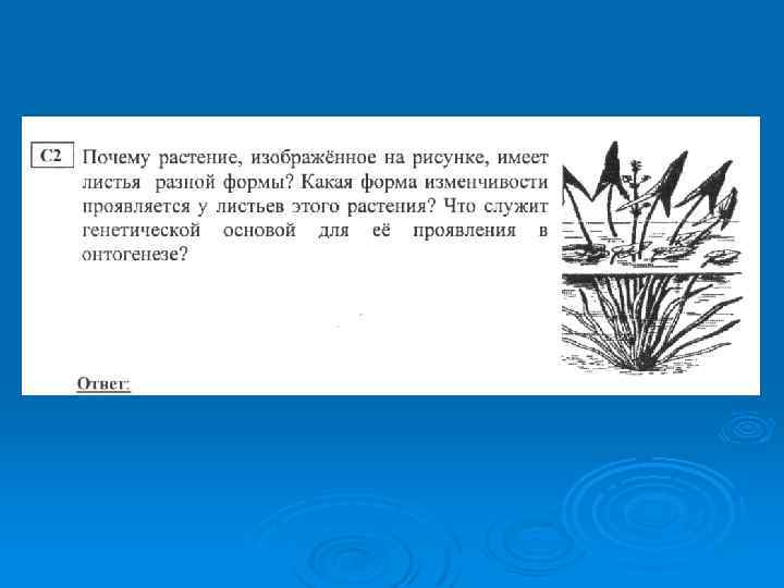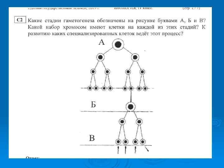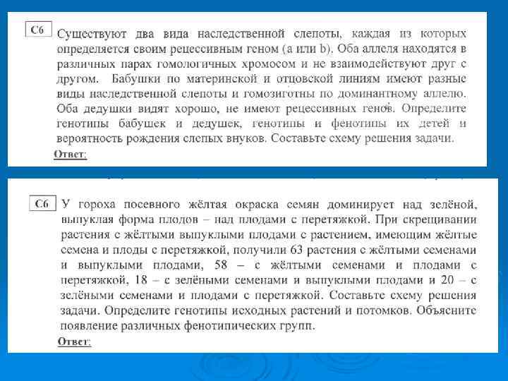 Ø Ø решению задач по цитологии, генетике, эволюции и экологии; формированию умений применять полученные знания в новой ситуации, сравнивать, устанавливать причинно-следственные связи, выполнять практикоориентированные задания. при организации текущего и тематического контроля знаний учащихся следует использовать задания в тестовой форме разного типа и уровня сложности, аналогичные заданиям ЕГЭ. при изучении соответствующих разделов курса биологии следует обратить внимание на формирование у учащихся умений работать с текстами, рисунками, иллюстрирующими биологические объекты и процессы