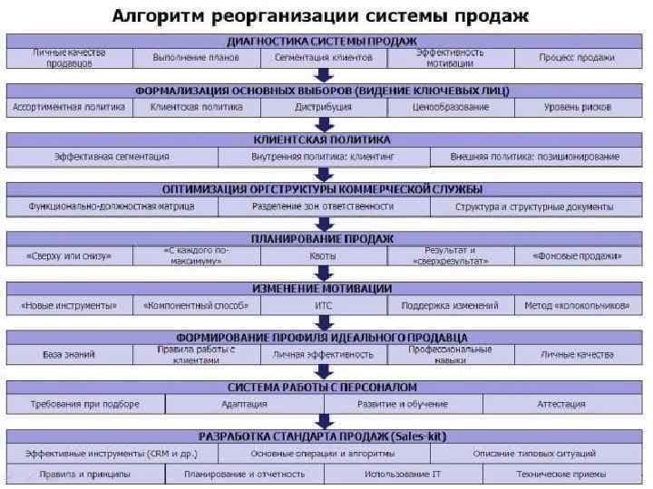 Разработка стандартов продаж 1. Основные операции и алгоритмы 2. Описание типовых ситуаций (алгоритмы работы с возражениями, глоссарий, «свойства-преимущества-выгоды) 3. Правила и принципы 4. Планирование и отчетность 5. Эффективные инструменты (ИТ, CRM, технические приемы)