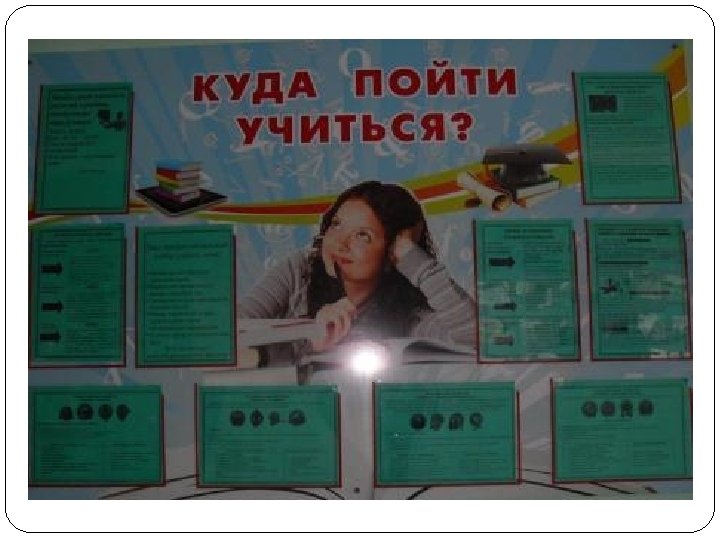 9 -11 классы 1. Познай самого себя. 2. Какие факторы оказывают значительное влияние на выбор профессии. Анкетирование. 3. Профориентация и медицинская профконсультация. 4. Мотивы выбора профессии. 5. Психологические характеристики профессий. 6. Они учились в нашей школе. 7. Выпускники школы-учителя. 8. Профессии с большой перспективой. 9. Как стать гением. Жизненная стратегия творческого человека. 10. Что век грядущий нам готовит? 11. Рабочие профессии нашего жилого района 12. Сотвори свое будущее. 13. Что? Где? Когда? Информация о профессиях. Периодическая печать и литература.