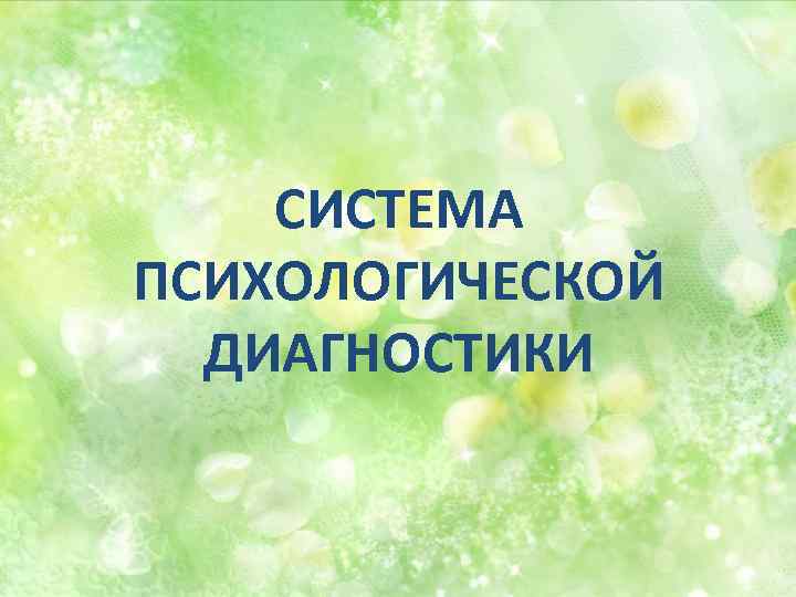 СИСТЕМА ПСИХОЛОГИЧЕСКОЙ ДИАГНОСТИКИ