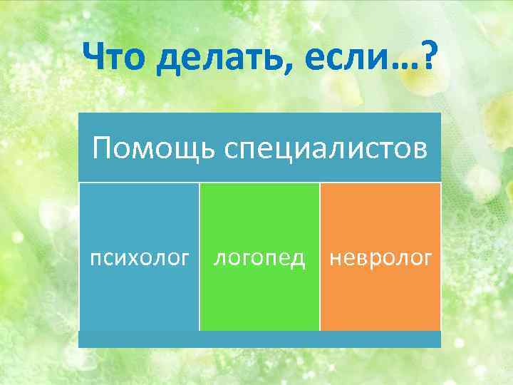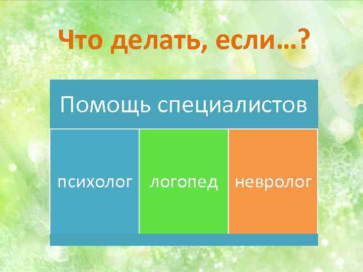 Что делать, если…? Помощь специалистов психолог логопед невролог