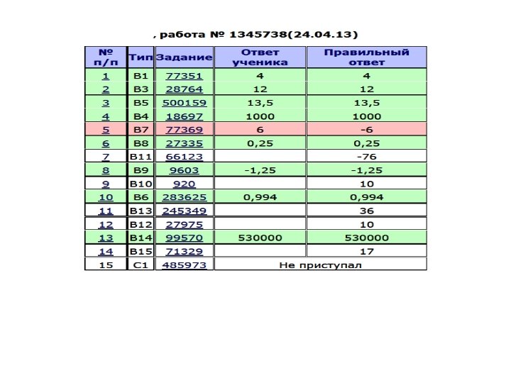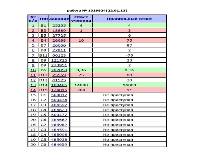 ВНИМАНИЕ! ИНТЕРНЕТ – РЕСУРСЫ ПО ПОДГОТОВКЕ К ЕГЭ – 2014 ПО МАТЕМАТИКЕ Приложение Название сайта ФИПИ (Федеральный институт педагогических измерений) Министерство образования и науки Российской Федерации Образовательные ресурсы Интернета – Математика Материалы сайта Контрольно-измерительные материалы, открытый сегмент ФБТЗ, методические письма, издания, рекомендованные при подготовке к ЕГЭ Указы президента РФ, акты правительства РФ, приказы МИНОБРНАУКИ РФ, нормативные правовые документы Демонстрационный вариант ЕГЭ-2014, типовые варианты ЕГЭ, типовые тематические задания ЕГЭ, учебные (справочные) пособия для подготовки к ЕГЭ, ЦТ по математике Открытый банк заданий Демоверсия, тренировочные работы, по математике ЕГЭ – 2014 г задания, аналогичные экзаменационным. Единый государственный экзамен по математике ЕГЭ-2014 Задания ЕГЭ Электронный адрес http: //www. fipi. ru/ http: //mon. gov. ru/ http: //www. alleng. ru/ http: //mathege. ru http: //reshuege. ru http: //www. alexlarin. n arod. ru/ http: //uztest Задания ЕГЭ- 2014 по Решение заданий пробных вариантов ЕГЭ- http: //ucheba. pro/ математике – Подробные 2014 решения заданий С На сайте http: //mathege. ru предусмотрено выполнение тренировочных работ для подготовки к ЕГЭ в режиме on – line