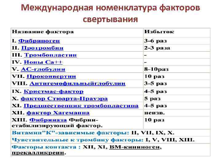 Международная номенклатура факторов свертывания