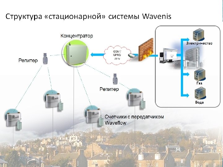 Система Wavenis Энергонезависимость Большой срок службы батареи Архивирование данных (почасовое) Построение «стационарной» и «мобильной» системы 2 -х сторонняя связь со счетчиком