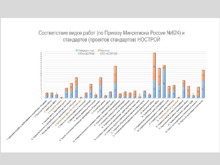 Программа разработки стандартов и рекомендации НОСТРОЙ Принято 200 СТО (Р) НОСТРОЙ В разработке – около 80 СТО (Р) НОСТРОЙ Приняты В разработке Общие технические вопросы организация строительного производства, метрология, оценка соответствия, карты контроля, капитальный ремонт 27 3 46 17 57 27 Жилые, общественные и промышленные здания, применение строительных конструкций и материалов устройство, монтаж, обследование, защита, усиление Наружные и внутренние инженерные сети и системы монтаж и пуско-наладка инженерного, промышленного и технологического оборудования, системы газораспределения и газопотребления, лифты Сооружения транспорта: дорожное и железнодорожное строительство, освоение подземного пространства, мостовые и тоннельные сооружения, аэродромы Энергетика объекты электроэнергетики и использования атомной энергии, гидроэнергетика, промышленные печи и агрегаты, 56 14 16 14