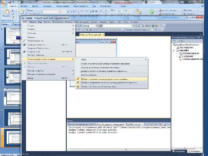 Установка системы управления версиями Система управления версиями Visual Studio является только средой для подключаемых модулей систем управления версиями сторонних поставщиков. Поэтому, ее функциональные возможности активируются только посредством установки подключаемого модуля.