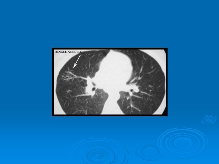 AKCİĞER FONKSİYON TESTLERİ Ø Grafideki evrelerle yakın ilişki Ø Evre-1 %80 normal Ø %30 -50 hastada obstrüktif tipte ventilasyon azalması Ø Pulmoner infiltrasyon varsa, %40 -70 FVC, FEV-1’de düşmeyle birlikte restriktif tipte ventilasyon azalması