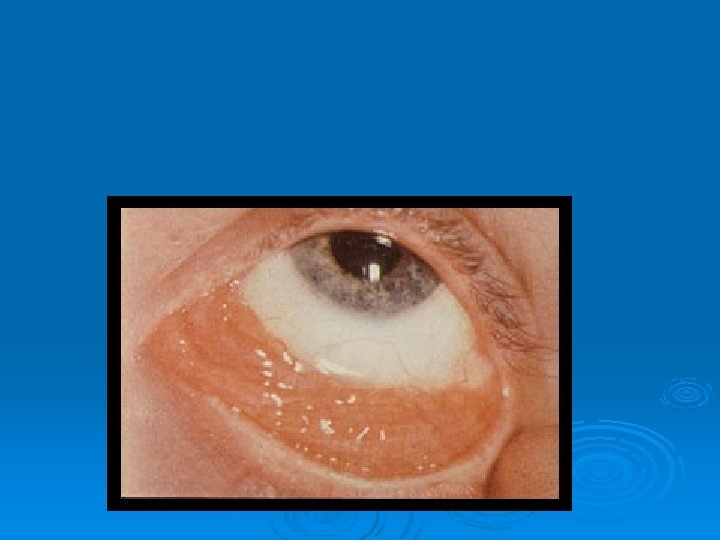 Ø Göz Tutulumu : -Anterior veya posterior granulomatous uveitis -Konjunctival leziyon ve skleral plaques -Papilledema -Lakrimal gland (keratoconjuctivitis sicca)
