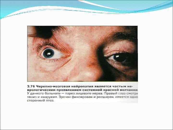 поражение ЦНС Головная боль Поражение черепно-мозговых и глазных нервов с развитием нарушения зрения Транзиторные ишемические атаки, инсульты Периферическая невропатия Острый психоз Органический мозговой синдром ((эмоциональная лабильность, эпизоды депрессии, нарушение памяти) Судорожные припадки ( большие, малые, по типу височной эпилепсии)