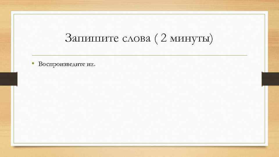 Запишите слова ( 2 минуты) • Воспроизведите их.