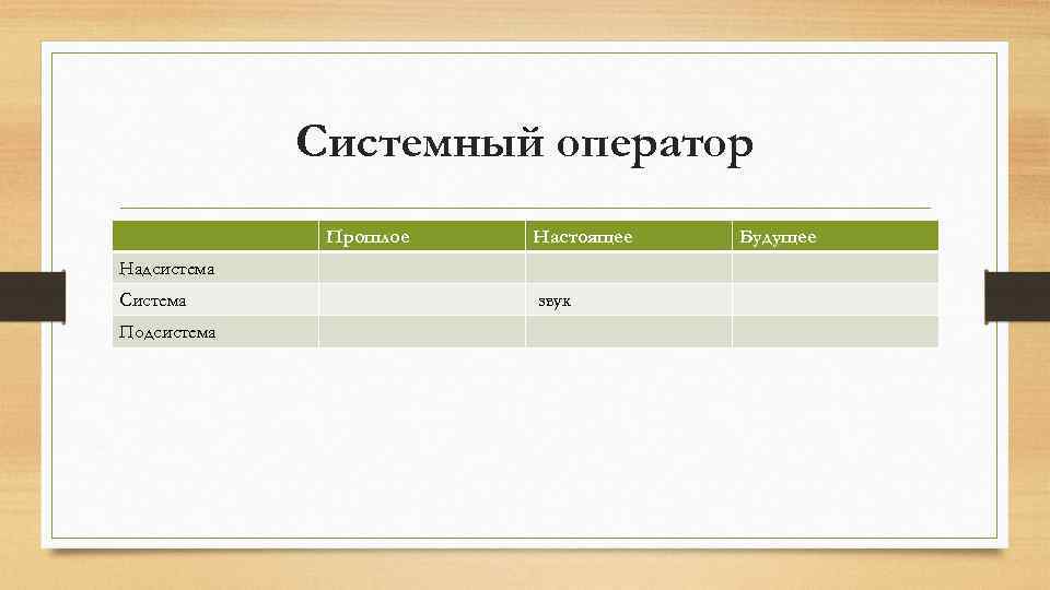 Системный оператор Прошлое Настоящее Надсистема Система Подсистема звук Будущее