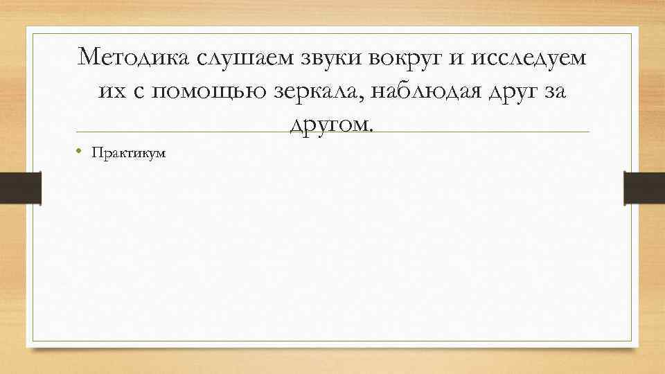 Методика слушаем звуки вокруг и исследуем их с помощью зеркала, наблюдая друг за другом. • Практикум