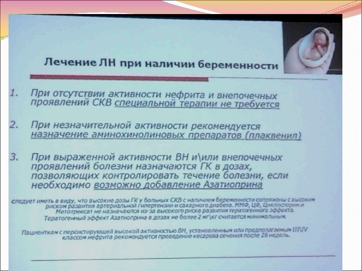 При выявлении активного волчаночного нефрита, помимо основной терапии ГК и цитостатиками, должна назначаться дополнительная терапия: Амнихинолиновые препараты (плаквенил) назначается в дозах от 200 до 400 мг в день, при отсутствии противопоказаний (уровень доказательности С); При наличии протеинурии > 0, 5 г/24 часа назначаются блокаторы ангиотензиновых рецепторов (уровень доказательности А); При повышении уровня липопротеидов низкой плотности в сыворотке крови ≥ 100 мгдл рекомендуется назначение статинов (уровень доказательности С)