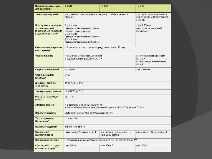 Точность измерений – это погрешность, которая определяется при измерении образца в различных направлениях. В точности измерений учитывается также диаметр шарика. Действующий диаметр складывается из физического диаметра шарика и необходимого для генерации коммутационного сигнала отклонения измерительного стержня. Таким образом учитывается деформация измерительного стержня. Погрешность измерения щупа определяется компанией HEIDENHAIN на прецизионных измерительных машинах при температуре 22 градуса и с использованием измерительного стержня T 404 ( длина 40 мм, диаметр шарика 4 мм). Измерительный щуп TS 740 отличается высокой точностью измерений и повторяемостью результатов. Имея небольшую силу касания TS 740 хорошо подходит для высокоточных измерений на станках. Повторяемость результатов измерений Под повторяемостью результатов измерений понимается погрешность, возникающая при многократных измерениях образца в одном направлении. Влияние измерительного стержня Длина и материал стержня оказывают значительное влияние на коммутационные характеристики измерительного щупа. Данные измерительные стержни обеспечивают точность ± 5 мкм или лучше.