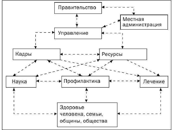 Границы системы (!) В более узком и привычном смысле под здравоохранением подразумевают совокупность подведомственных Министерству здравоохранения медико-санитарных органов и учреждений, которые непосредственно призваны осуществлять изучение здоровья населения и его нарушений, профилактику и лечение заболеваний, готовить и привлекать для этого особые кадры медико-санитарных профессий, поддерживать постоянную готовность немедленно прийти на помощь больному или страждущему человеку.