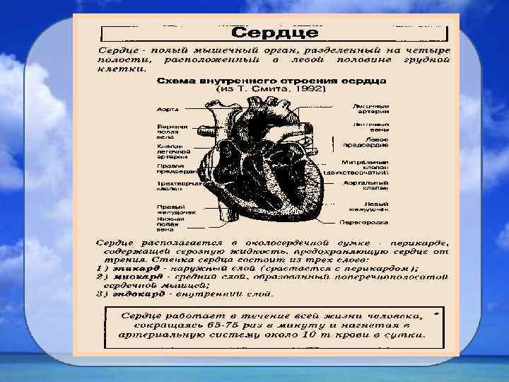 Сердечно-сосудистая система Состоит из кровеносных сосудов и сердца. Основной функцией системы кровообращения обеспечение органов питательными веществами, биологически активными веществами, кислородом и энергией; а также с кровью «уходят» из органов продукты распада, направляясь в отделы, выводящие вредные и ненужные вещества из организма.