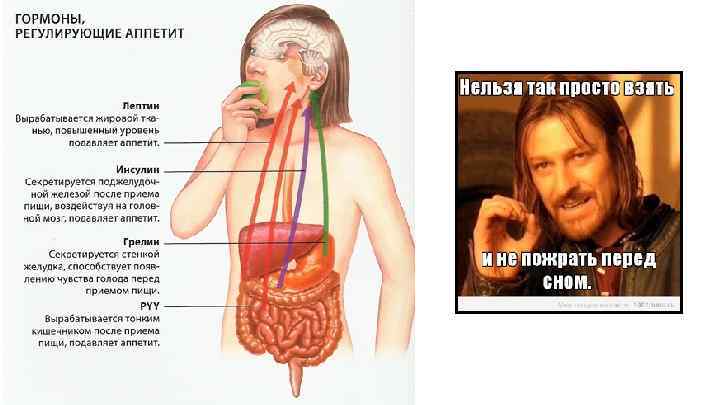 Углеводы быстро расщепляются и попадают в кровь Выброс гормона инсулина заставляет глюкозу выходить из крови в клетки. Если глюкозы клеткам достаточно – она запасается в печени в виде гликогена. Запас полон – глюкоза начинает превращаться в жир. При голодании в первую очередь расходуется гликоген ( превращаясь в глюкозу) и только потом – жировые запасы.