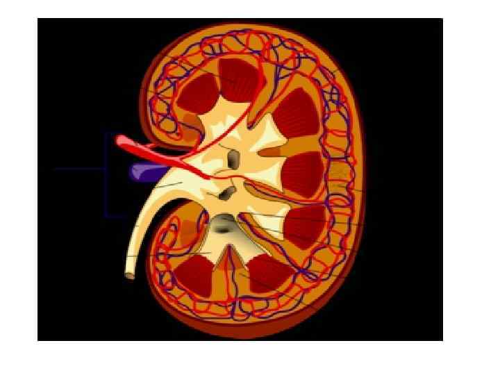 Функциональная единица почки - нефрон - с соответствующей системой кровоснабжения. Почечный каналец и собирательная трубочка показаны серым цветом, а сосудистые элементы - темной краской. Вначале кровь проходит через капилляры клубочка, а затем через напоминающие шпильку для волос петли капилляров vasa recta, которые заходят глубоко в мозговое вещество почки вместе с петлей Генле.