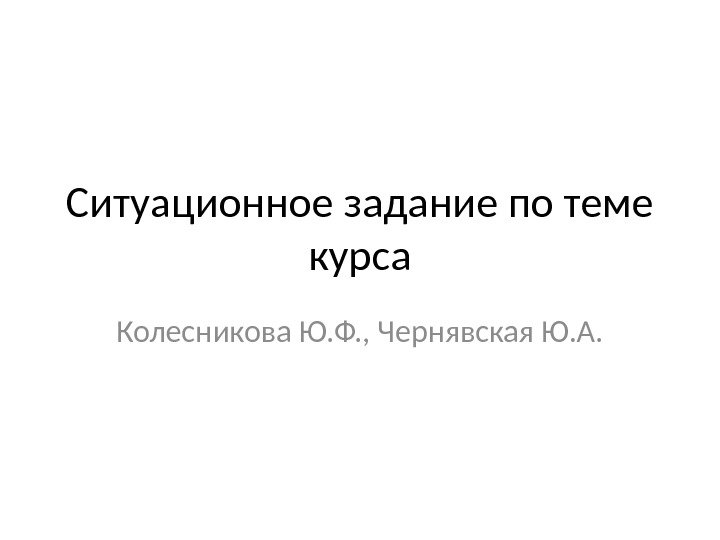 Ситуационное задание по теме курса Колесникова Ю. Ф. , Чернявская Ю. А.