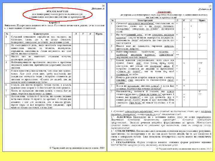 Структура сертифікаційної роботи (поглиблений рівень) 58 завдань базового рівня + 16 завдань поглибленого рівня (210 хв. ) № завдання Предмет Форма завдання К-сть балів українська мова завдання з вибором однієї правильної відповіді 0 або 1 українська мова завдання на встановлення відповідності 0, 1, 2, 3 або 4 укр. мова (завдання на читання й аналіз тексту) завдання з вибором однієї правильної відповіді 0 або 1 34 – 53 українська література завдання з вибором однієї правильної відповіді 0 або 1 54 – 57 українська література завдання на встановлення відповідності 0, 1, 2, 3 або 4 українська мова завдання з розгорнутою відповіддю від 0 до 20 59 – 62 українська література завдання з вибором однієї правильної відповіді (аналіз тексту) 0 або 1 63 – 66 українська література завдання на встановлення правильної послідовності 0, 1, 2 або 3 67 – 74 українська мова завдання з короткою відповіддю 0, 1 або 2 1 – 23 (зараховується як ДПА) 24 – 28 (зараховується як ДПА) 29 – 33 (зараховується як ДПА) 58 (зараховується як ДПА)