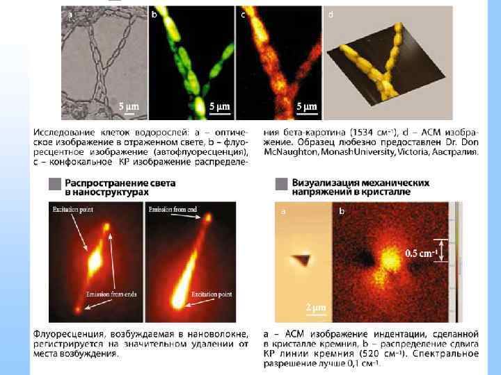 Примеры изображений СТМ изображение поверхности Si 7 x 7 полученное в сверх-высоком вакууме. Эритроциты Атомно-силовая микроскопия Жесткий диск с высокой плотностью записи Магнитно-силовая микроскопия Начальная стадия МЛЭ-роста Ga. As нановискеров на поверхности Ga. As(111), активированной каплями Au.