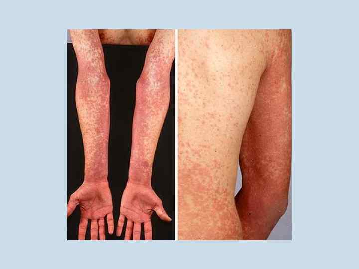 На ощупь - кожа шершавая, а при нажатии – сыпь пропадает. Характерны кожный зуд, сухость кожи и слизистых оболочек. Не редко присоединяется вторичная инфекция.
