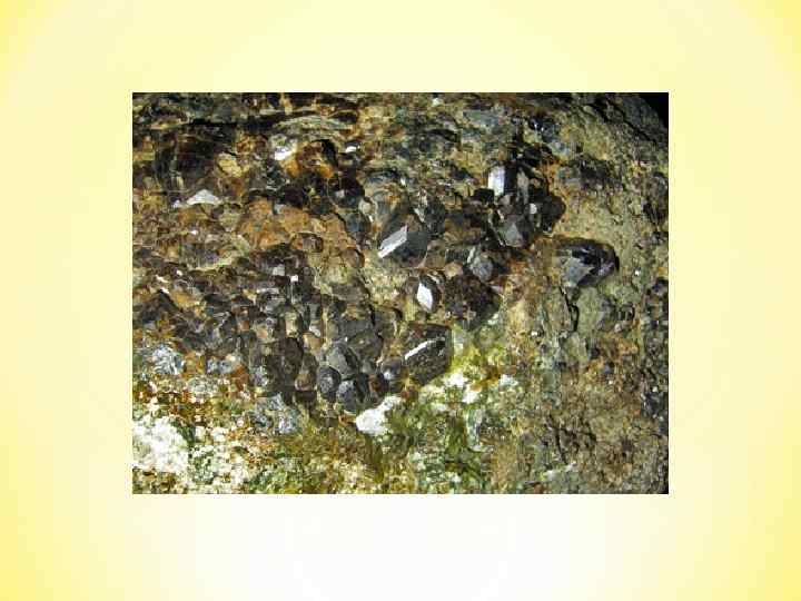 Известковые (известковистые) скарны образуются на контакте с мраморизованными известняками и мраморами. кальциевые силикаты и двойные соли: волластонит Voll Ca 3[Si 3 O 9], гроссуляр-андрадит Gross-Andr Ca 3 Al 2[Si. O 4]3 Ca 3 Fe 2[Si. O 4]3, диопсид-геденбергит Di-Hed Ca. Mg[Si 2 O 6] Ca. Fe[Si 2 O 6], везувиан VCa 10(Mg, Fe)2 Al 4[Si. O 4][Si 2 O 7]2(OH, F)4, эпидот Ep Ca 2 Fe. Al 2[Si. O 4][Si 2 O 7]О(OH), Температура скарнообразования различна: для магнезиальных 850– 650 о. С, известковых 800– 400 о. С. Непосредственно у контакта при максимальном прогреве температура может подниматься до 1000 о. С.