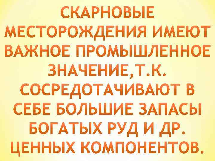 КРОМЕ ЭНДО- И ЭКЗОСКАРНА ВЫДЕЛЯЮТ СКАРНОИДЫ, ОКОЛОСКАРНЫ И БЛИЗСКАРНЫ.