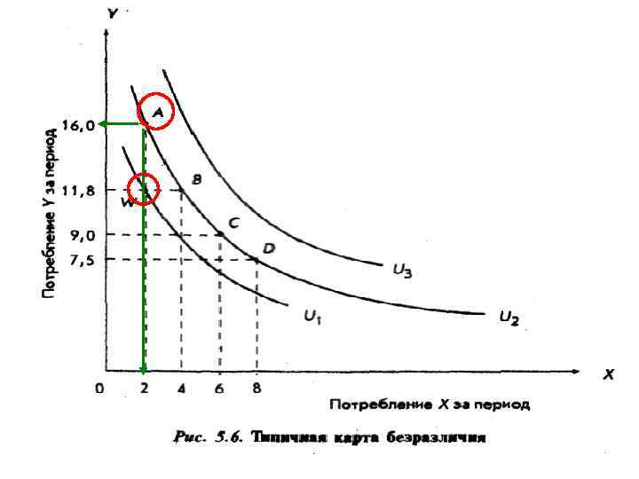 Но общая полезность остается неизменной, потеря от -∆У компенсируется приобретением от потребления большего количества Х Наклон кривой безразличия