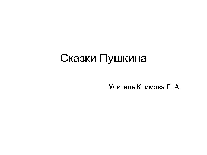 Сказки Пушкина Учитель Климова Г. А.
