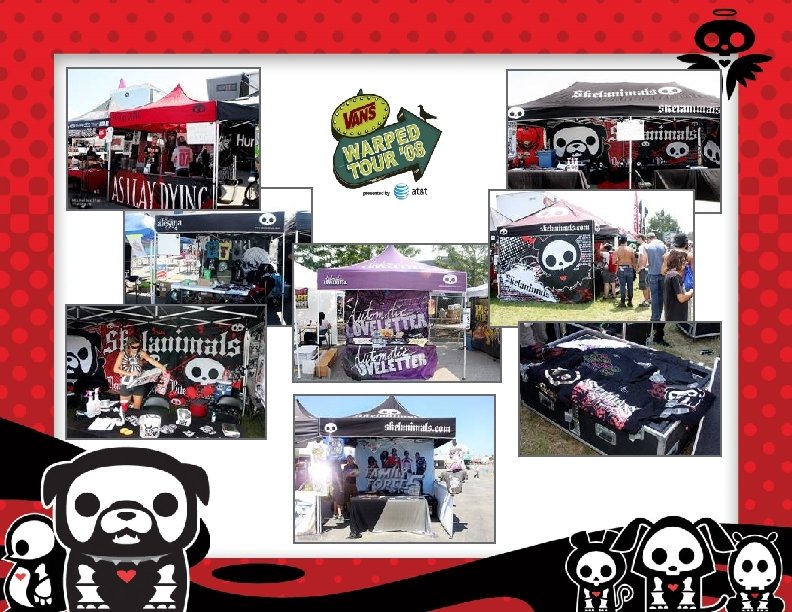 Website & My. Space Fans have bombarded the Skelanimals website, www. skelanimals. com (which receives over 3, 000 hits per month) and flooded its My. Space www. myspace. com/skelanimal with comments and requests for product and store information. The Skelanimals online community launched on June 20 th to coincide with the first Warped Tour date.