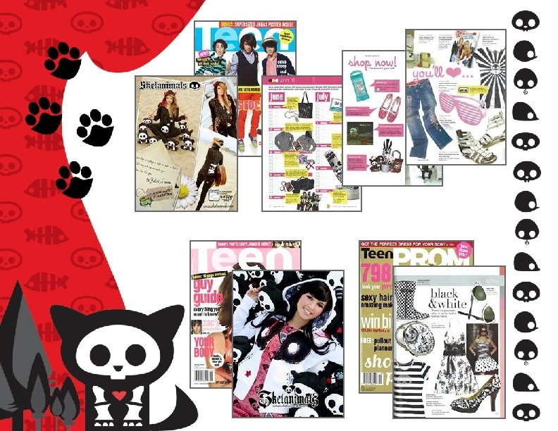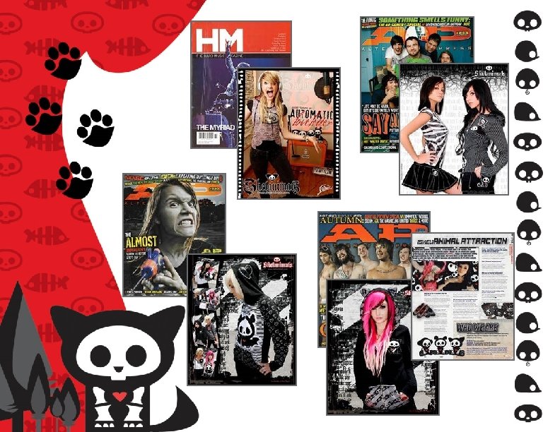 Music Marketing Our aggressive music marketing campaign leverages our presence on My. Space and the Skelanimals interactive community in conjunction with a national advertising & editorial campaign in major publications such as Alternative Press, Revolver, AMP, Teen Magazine, Seventeen and Cosmo. Girl featuring our sponsored recording artists, and My. Space celebrities. Skelanimals cross-promotes the bands through its sponsorship of major music tours and industry events, contests and retail promotions, and collaboration with cutting-edge media outfits such as My. Space, MTV, Fuse, Imeem, VIMBY and Buzznet.