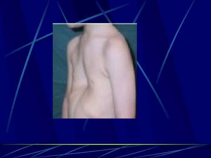 Аномалии грудной клетки. 1. Аномалии грудной стенки. 1) деформации передней стенки грудной клетки: - воронкообразная грудная клетка; - килевидная грудная клетка, или «куриная грудь» . 2) Деформации боковых стенок грудной клетки при дефектах развития позвонков, приводящих к искривлениям позвоночного столба в форме кифоза и сколиоза: - «реберный горб» . 2. Неравномерного развития грудной клетки и отставания ее роста в переднезаднем направлении - плоская грудь.