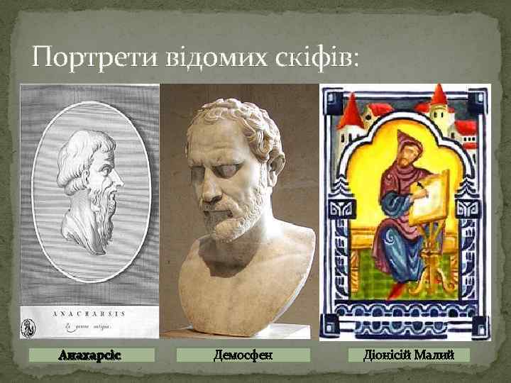 Портрети відомих скіфів: Анахарсіс Демосфен Діонісій Малий