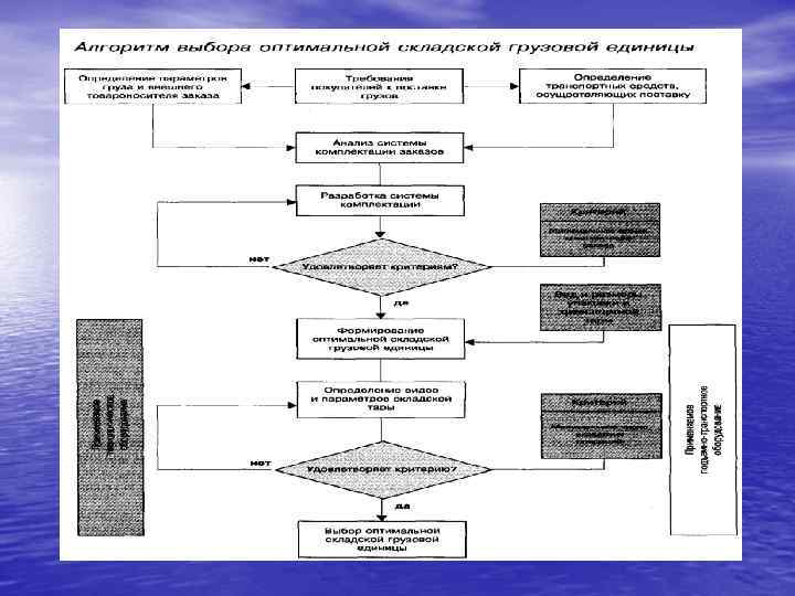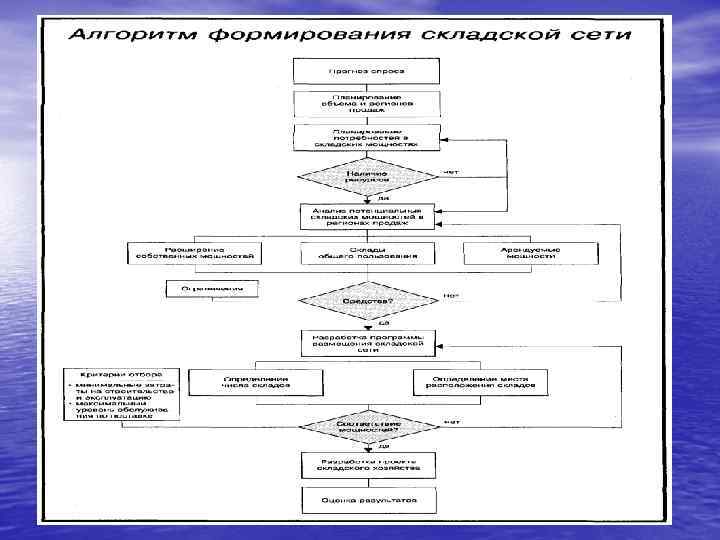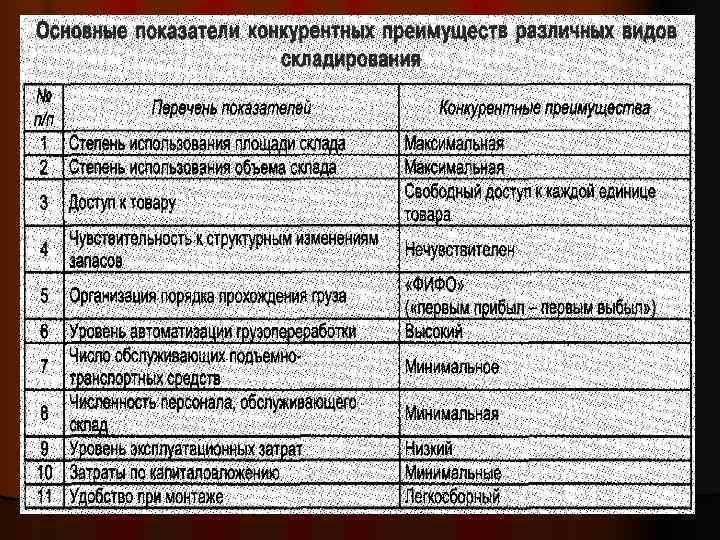 Основные функции склада в логистической системе • Выравнивают интенсивность материальных потоков в соответствии со спросом потребителя; • Преобразуют ассортимент внутрискладского потока в соответствии с заказом клиента; • Обеспечивают концентрацию и хранение запасов; • Сглаживают асинхронности производственного процесса; • Унитизируют партии отгрузки; • Предоставляют услуги (материальные, организационно-коммерческие, складские, транспортно-экспедиторские)
