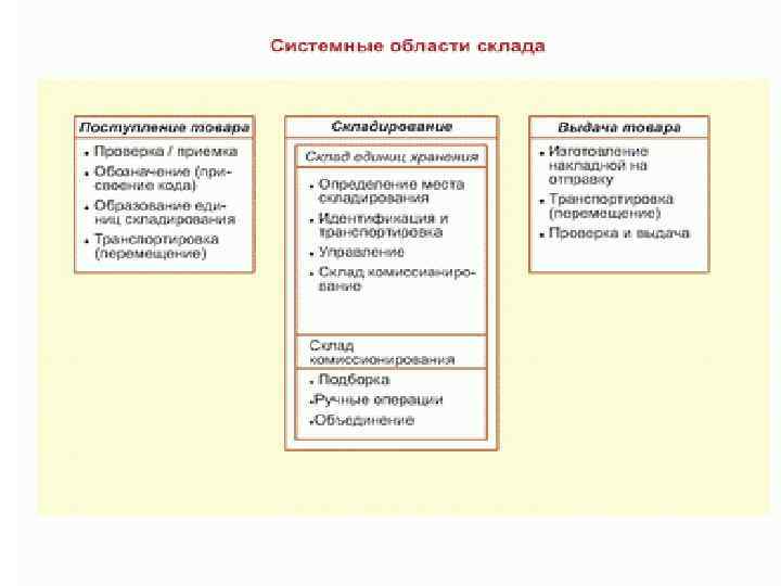 Складская логистика Склад — помещение, комплекс помещений, предназначенный для хранения материальных ценностей. В логистике склад выполняет функцию аккумулирования резервов материальных ресурсов, необходимых для управления колебаний объёмов поставок и спроса, а также синхронизации скоростей потоков товаров в системах продвижения от изготовителей к потребителям или потоков материалов в технологических производственных системах.