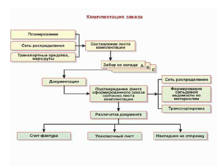 Комиссионирование, или система комплектации • В процессе переработки груза процесс комплектации проходит три этапа: 1) отборка товара по заказам покупателя; 2) комплектация полного заказа покупателя в соответствии с его заявкой; 3) комплектация партий отправки покупателям для централизованной или децентрализованной доставки. Существует несколько схем системы комиссионирования, которые включают различное сочетание следующих позиций: • исходное положение груза по отношению к отборщику (статическое и динамическое) при подготовке материала; • перемещение груза в пространстве при отборе (одномерное, двухмерное); • выполнение отбора груза (с помощью и без помощи технических средств); • степень комплектации заказа (централизованная – отбор груза одновременно для нескольких клиентов и децентрализованная – для одного клиента). Управление перемещением груза определяется возможностями технологического и обслуживающего оборудования: • в автономном ручном режиме; • в автоматическом местном режиме управления (из кабины) с помощью пульта управления; • в автоматическом дистанционном режиме управления с помощью пульта, расположенного вне стеллажного прохода; • с использованием режима «онлайн» (автоматический режим управления от ЭВМ).