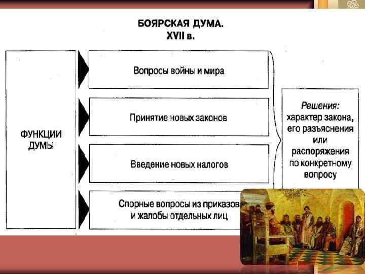 Политический строй Сословно-представительная монархия Абсолютная монархия • В царский титул включается слово «самодержец» • Снижается значение Земских соборов (последний созыв – 1653 г. ) • Меняется роль и состав Боярской думы (указы царя без «приговора» бояр, увеличение доли дворян и дьяков) • Расцветают приказы – органы центральной исполнительной власти (всего 55); на местах власть перешла к воеводам • Создан Тайный приказ (политическая полиция) Солдаты • В 1682 г. отменено местничество Рейтары • Началось создание регулярной армии (полки «нового строя» ) Драгуны