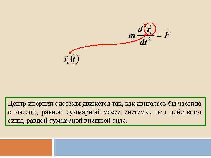 Центр инерции системы движется так, как двигалась бы частица с массой, равной суммарной массе системы, под действием силы, равной суммарной внешней силе.