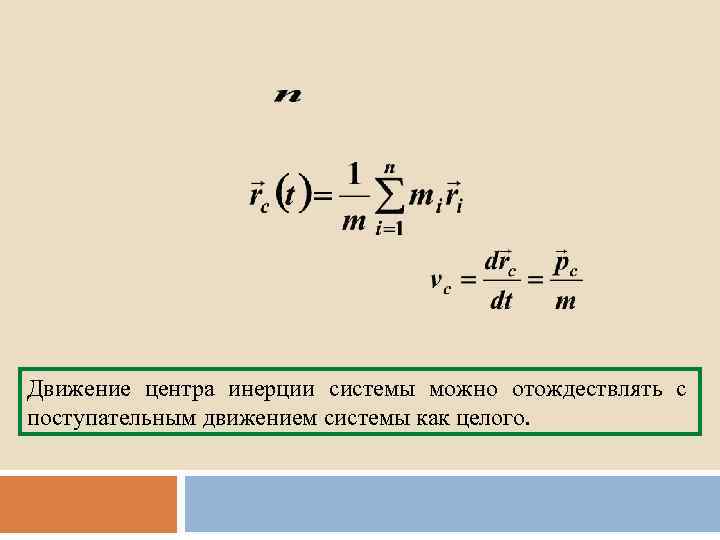 Движение центра инерции системы можно отождествлять с поступательным движением системы как целого.
