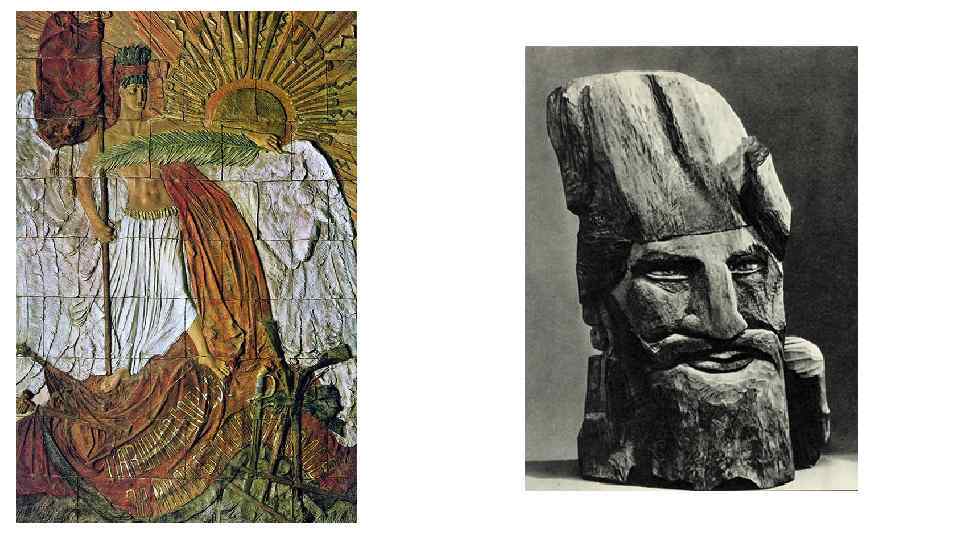 • Два цикла работ, очень разные по их образному миру и по самому характеру пластики, но порой в чем-то неожиданно сближающиеся, занимают главное место в творчестве Конёнкова с конца 1890 -х и на протяжении 1910 -х гг. Первый цикл - фантастический, фольклорный, оживляющий мир сказочных лесных существ. Его питали, с одной стороны, детская память крестьянского мальчика из лесных мест под Ельней, с другой - свойственное эпохе модерна стремление воссоздать и переосмыслить древнюю мифологию, наполнить утонченную современную культуру могучими олицетворениями таинственных природных сил. Конёнков шел здесь скорее всего по стопам М. А. Врубеля с его "Паном". Он рубил своих "Великосила" и "Старенького старичка" (оба 1909), "Стрибога" и "Старичка-полевичка" (оба 1910), "Вещую старушку" (1915) и "Лесовика" (1917) из дерева, из круглого бревна, как делали древние славяне своих идолов, широко и крупно, не заботясь об анатомии, свободно отступая от реальных пропорций. Эти сказочные образы не делают менее убедительными ни плоские лица с чуть намеченными чертами, ни короткие ноги, ни громадные, тяжелые кисти рук. Само дерево ведет инструмент скульптора, подсказывает композицию и пропорции, диктует меру обобщения и пластику формы.