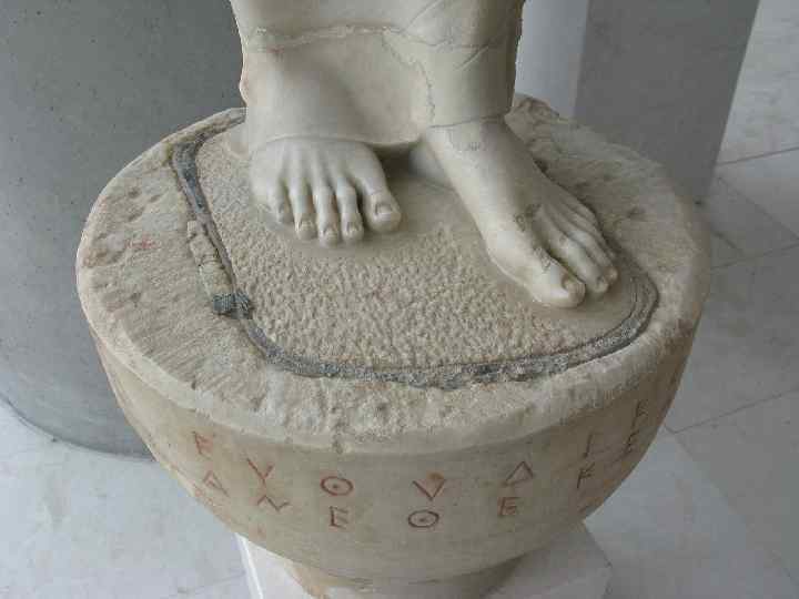 550 -540. Кора Фраксилея n Коры создавались и с вотивными, и с мемориальными целями. n Богатые донаторы посвящали их как подарок божествам, значительно реже — чтобы отмечать надгробие членов семьи. n На базах статуй (иногда на их одеждах) нередко высекалась короткая надпись, озвучивающая предназначение статуи, имена патрона и скульптора. n Коры никогда не являлись изображением какого -либо божества.
