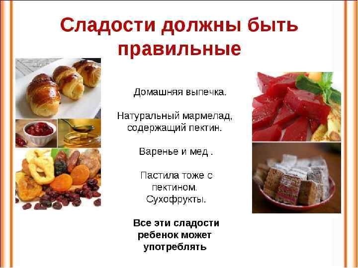 ПОЛЬЗА: Сладости - это углеводы, а значит, и источник энергии, так необходимой для детей, когда они много двигаются. Также углеводы участвуют в построении белков крови, гормонов. Велика польза сладостей и в психологическом аспекте. Большинство людей после того, как съели шоколадку, чувствуют прилив жизненной энергии, у них улучшается настроение. ВРЕД: Не все сладости одинаково полезны для детей и взрослых. Очень часто злоупотребление сладостями приводят к кариесу и излишней полноте. От сладкого может нарушиться обмен веществ. Повышается нагрузка на печень. Чрезмерное употребление сладостей можно спровоцировать проблемы с кожей и аллергические реакции. Сладости можно вводить в рацион ребенка после года, но только в ограниченном количестве. Например, сахар или мед можно добавлять в чай. компоты, муссы, повидла и варенья. Все сладкие продукты необходимо давать понемногу. Диетологи рекомендуют знакомить с мороженым детей после трех лет.