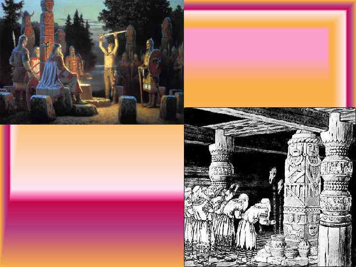Политеизм – вера в богов ( «поли» - много) • • • Перун (Сварог) – бог грозы, молнии и грома Волос (Велес) – бог скота, торговли и богатства Даждьбог (Хорос) – солнечное божество Стрибог – бог ветра, вихря и вьюги Мокошь – супруга Перуна, богиня плодородия, воды, женских работ и девичьей судьбы • Симаргл – священный крылатый пёс, охраняет семена и посевы • Почему главный бог славян был покровителем грома и молнии?