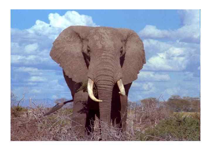 • Африканские слоны являются самыми крупными сухопутными млекопитающими, которые населяют нашу планету. В настоящее время в Африке это единственный представитель отряда хоботных. Африканских слонов разделяют на два вида — лесной и саванный. Как установили ученые, анализ ДНК африканских слонов говорит о достаточно преклонном возрасте этих видов — от двух до семи миллионов лет. • Африканский слон может достигать в высоту более четырех метров при весе в семь -восемь тонн. В большинстве случаев самцы немного крупнее самок. Отличить по внешнему виду самку африканского слона от самца на первый взгляд достаточно сложно. Бивни присутствуют и у самок, и у самцов, причем размеры их могут быть по истине фантастическими — известны случаи, когда были обнаружены слоны, бивни которых достигали более четырех метров.