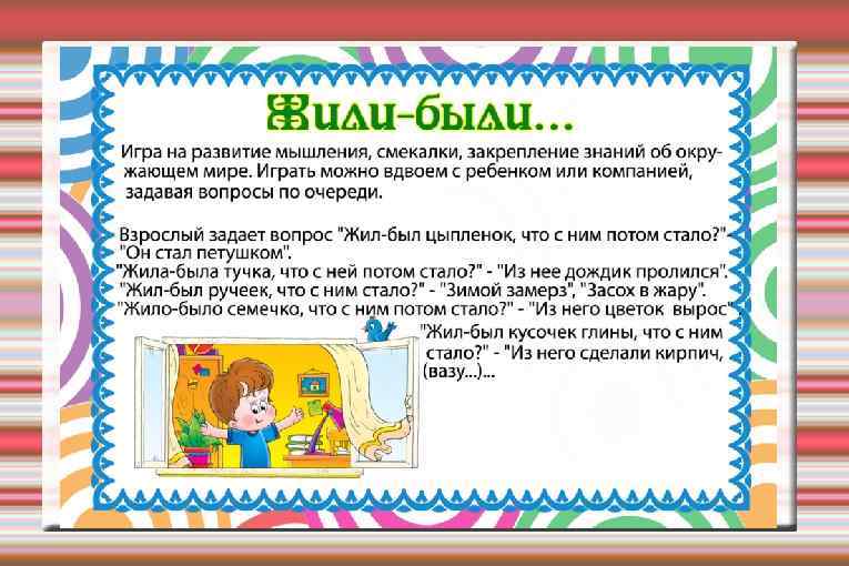 • В. И. Логинова разработала систему занятий, содействующих развитию словаря детей: 1. Занятия по первичному ознакомлению с предметами и явлениями: • Демонстрация предметов и явлений; • Дидактические игры. 2. Занятия по ознакомлению с особенностями предметов: • Осмотры предметов; • Занятия на сравнение; • Занятия по ознакомлению со свойствами и качествами предметов. 3. Занятия по введению элементарных понятий о предметах и явлениях: • По ознакомлению с видовыми понятиями • По ознакомлению с родовыми понятиями; • Занятия на классификацию. 4. Занятия по обучению детей отгадыванию и составлению загадок.
