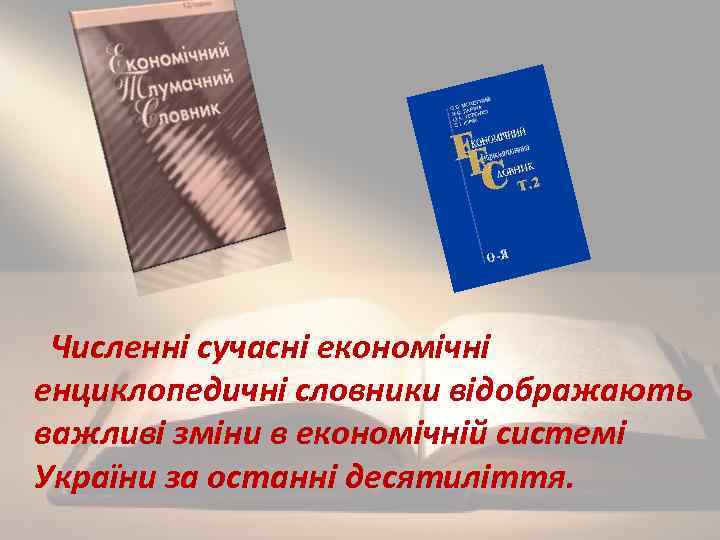 Численні сучасні економічні енциклопедичні словники відображають важливі зміни в економічній системі України за останні десятиліття.