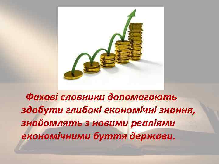 Фахові словники допомагають здобути глибокі економічні знання, знайомлять з новими реаліями економічними буття держави.