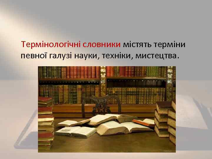 Термінологічні словники містять терміни певної галузі науки, техніки, мистецтва.
